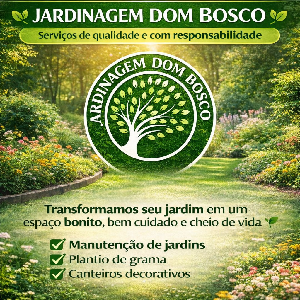 A Dom Bosco Jardinagem é uma empresa especializada em criação, manutenção e cuidados completos com áreas verdes. Nosso compromisso é transformar cada espaço em um ambiente bonito, saudável e harmonioso, valorizando a natureza e o bem-estar de nossos clientes.